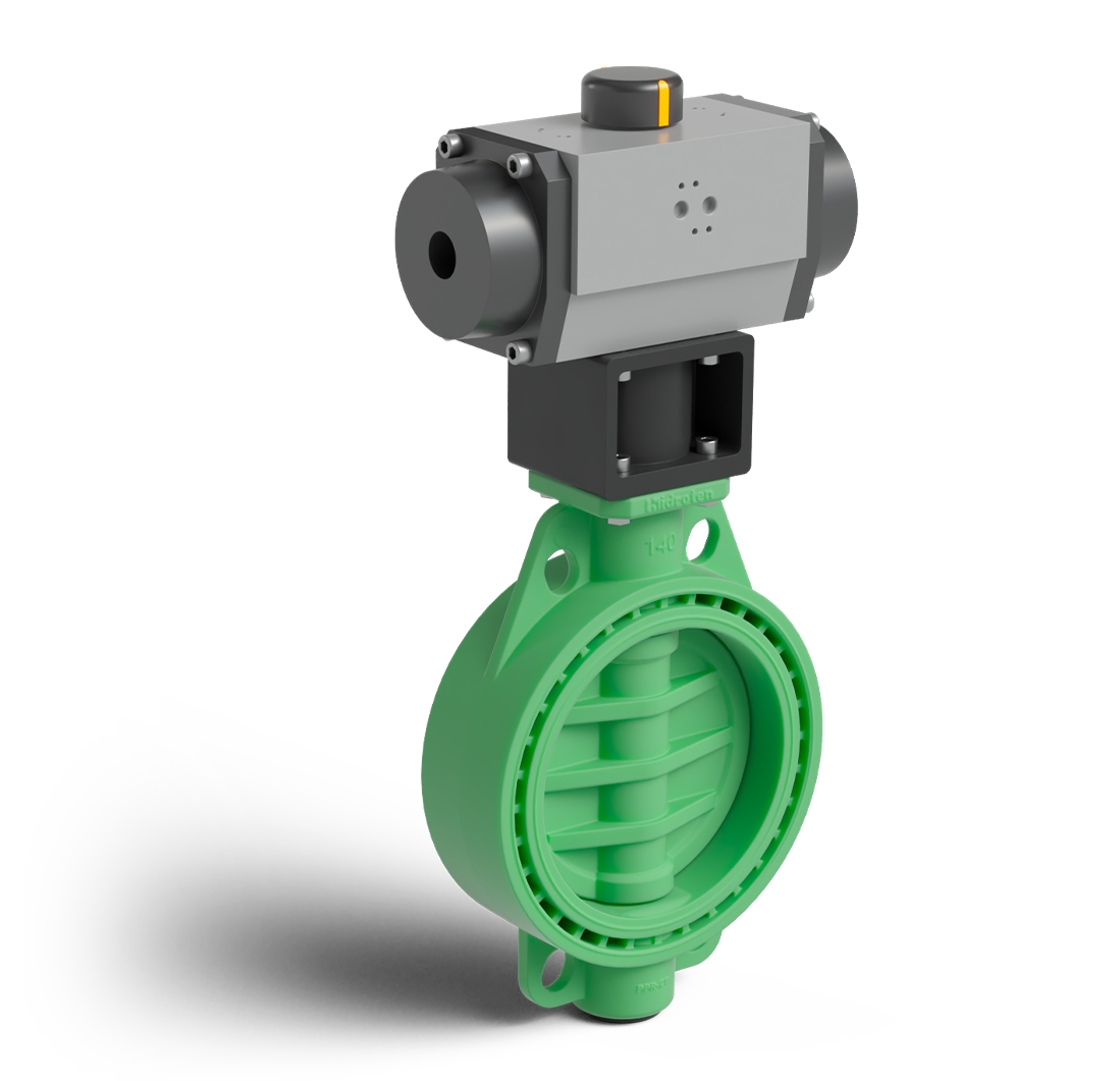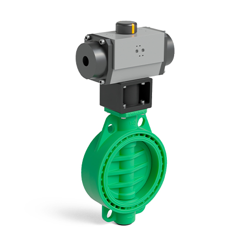 Green colour PP-RCT Implex butterfly valve pneumatic actuator S/E